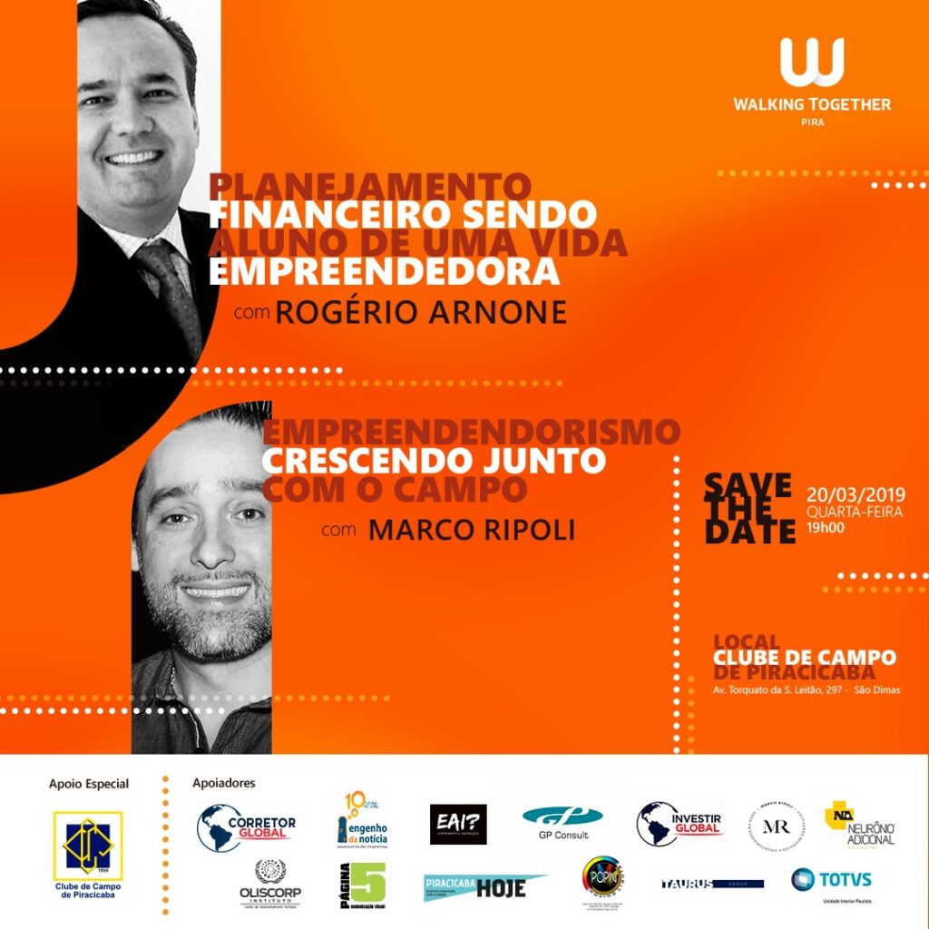 Com o objetivo de reunir empresários interessados em novos negócios e conexões para qualidade de vida, o Walking Together realiza sua sexta edição no próximo dia 20. O evento, que será às 19h30, no Salão de Vidro do Clube de Campo de Piracicaba, terá palestras sobre empreendedorismo no campo e planejamento financeiro.